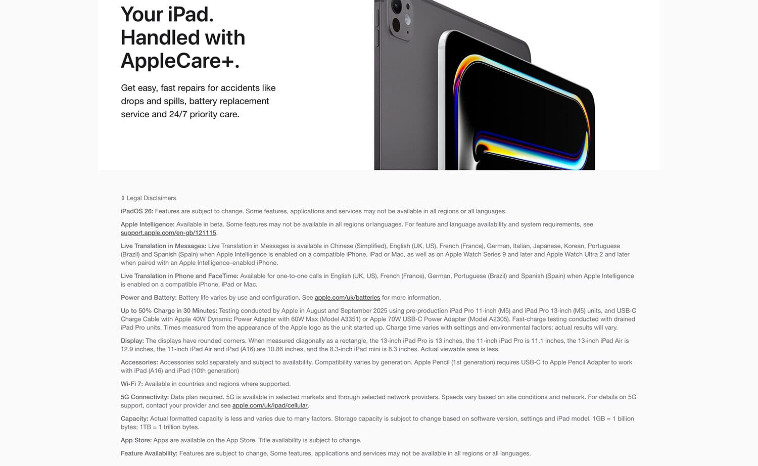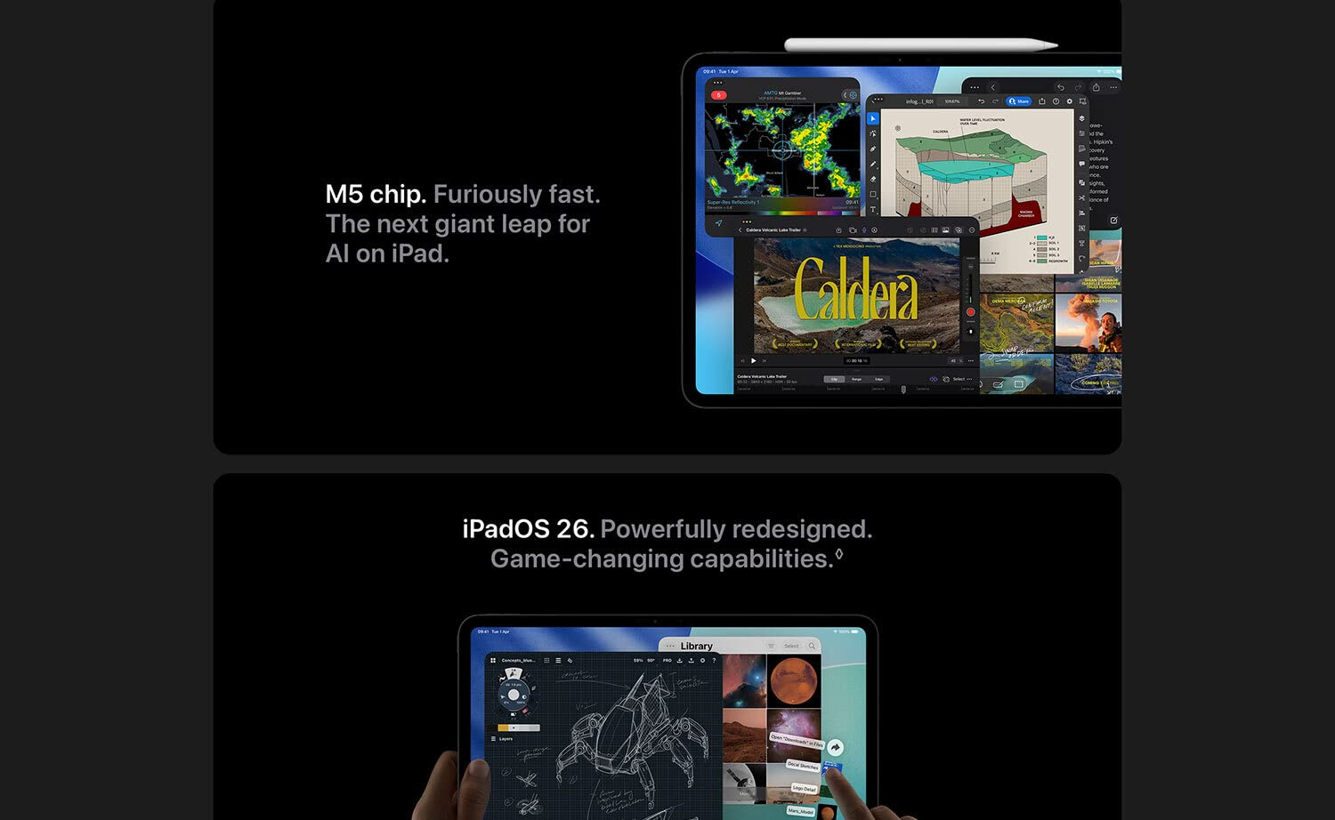 - IPADOS — Run pro apps and get more done with iPadOS 26 with Liquid Glass design and game-changing capabilities. With an intuitive and flexible windowing system, you can control, organise and manage your workflows like never before.