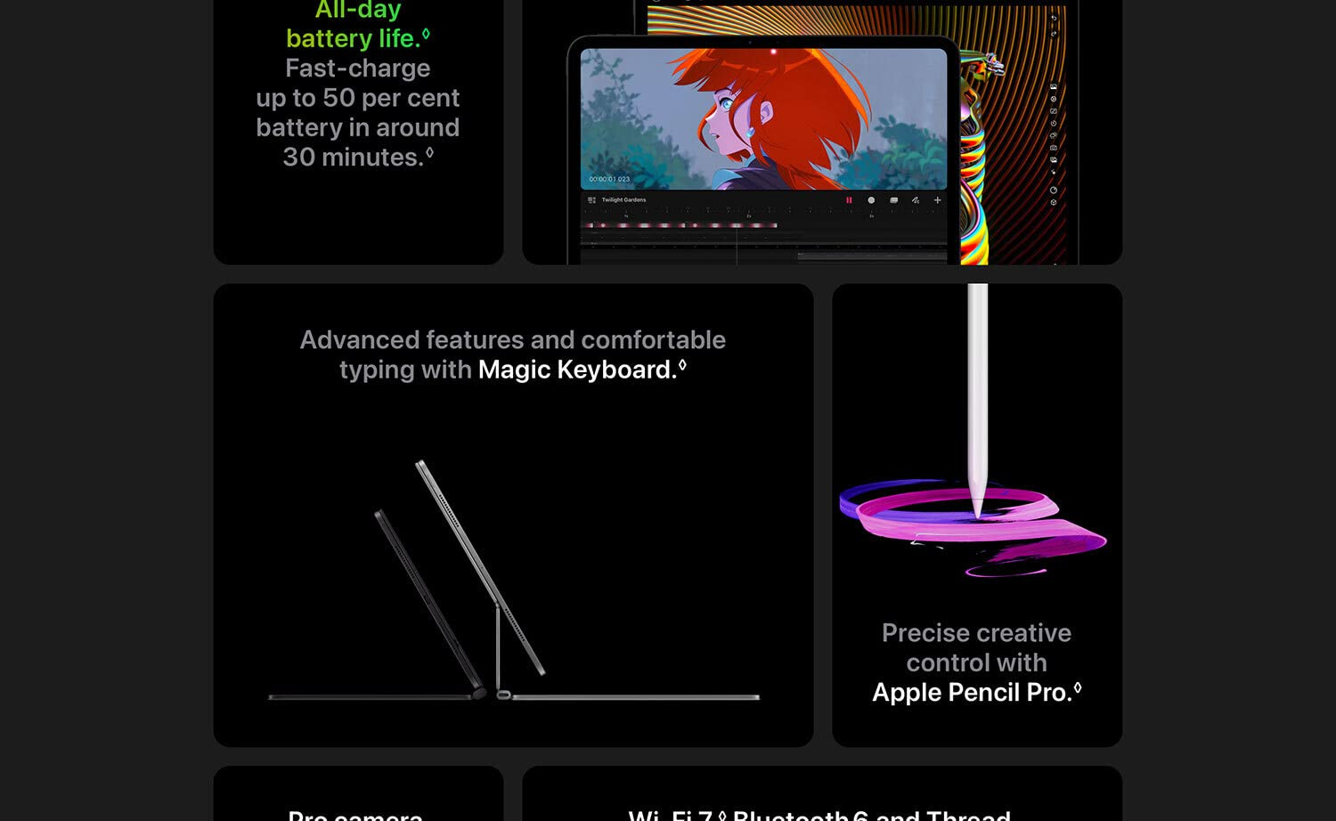- APPLE PENCIL AND MAGIC KEYBOARD FOR IPAD PRO — Apple Pencil Pro and Apple Pencil (USB‑C) enable intuitive and precise control for drawing, note-taking and creativity. Magic Keyboard provides comfortable typing and a trackpad with haptic feedback.